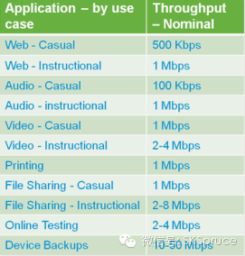 会,那么会有很多人上传视频,带宽分配需要重新考虑,每个人至少有一个设备应保证1Mbps带宽。如果是小组讨论会,那么带宽需求就会小得多。下图是一些