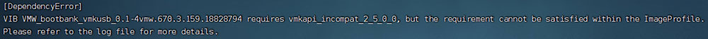 2、此报错是由于已安装的VIB软件版本与升级版本兼容性存在问题,可以先根据上述报错进行查找