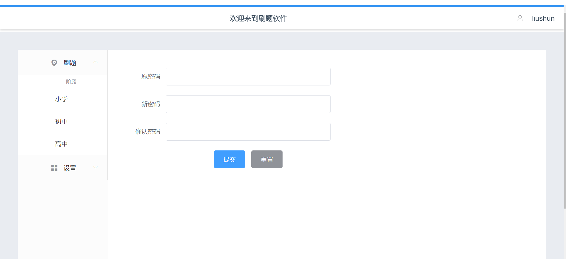 登录之后,就是做题主页面了,最开始默认是小学生做题页面,可以在左侧导航栏里面选择自己想要的年级