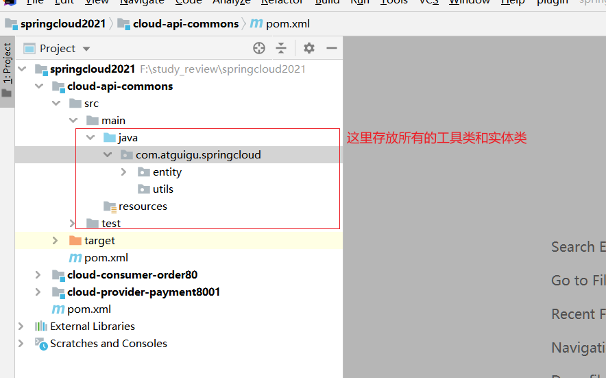 11、添加通用的实体类,把所有的实体类都放到这个工程下,如果其他服务要用,直接引入这个jar包