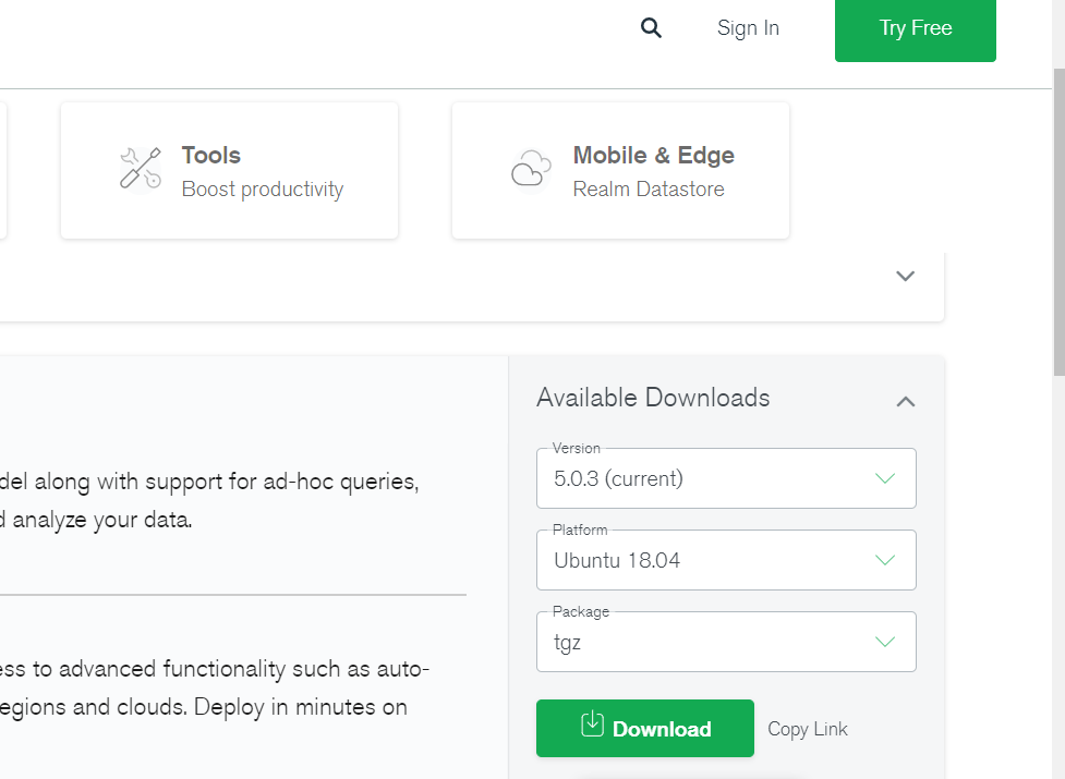 1、下载mongodb、官网地址:https://www.mongodb.com/try/download/community