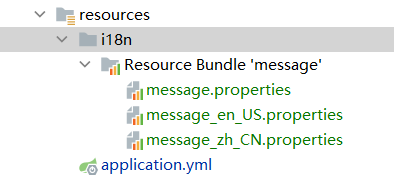 1.1、在resources类路径下创建i18n 文件夹,然后里面创建 message.properties message_zh_CN.properties message_en_US.properties 资源文件