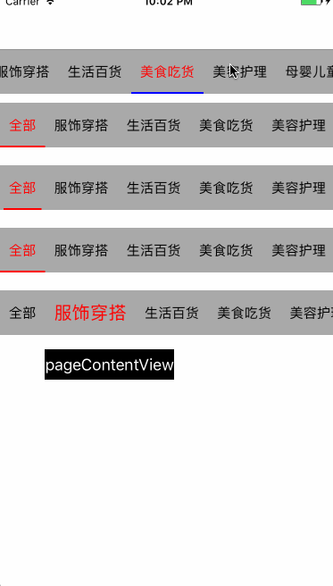 支持点击上方标题,切换下方内容页面,也支持滑动下方内容区域,切换上方的标题。
