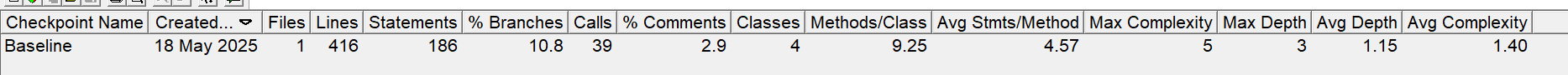 行数与语句数:代码总行数为 416 行,语句数量是 186 条 。行数较多而语句数相对较少,可能存在较多空白行或长语句。此规模对于小型项目尚可,但功能扩展时可能需合理拆分 。