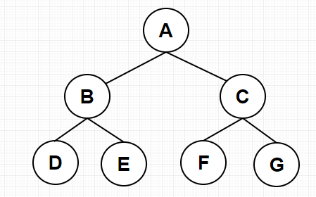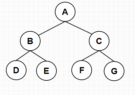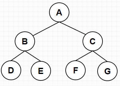 上图中,先访问结点A,输出A,遍历结点B,输出B,结点B遍历结点D,结点D为叶子结点,输出D,返回结点B,遍历结点E,结点E为叶子结点,输出E,返回结点B,结点B的左右结点均遍历过,返回结点A,结点A已经访问过,为访问结点A的右子树即结点C,输出C,遍历结点C,遍历结点F,结点F为叶子结点,输出F,返回结点C,遍历结点G,结点G为叶子结点,输出G,返回结点C,结点C访问过,返回结点A,结点A的左右子树均遍历过,遍历结束。