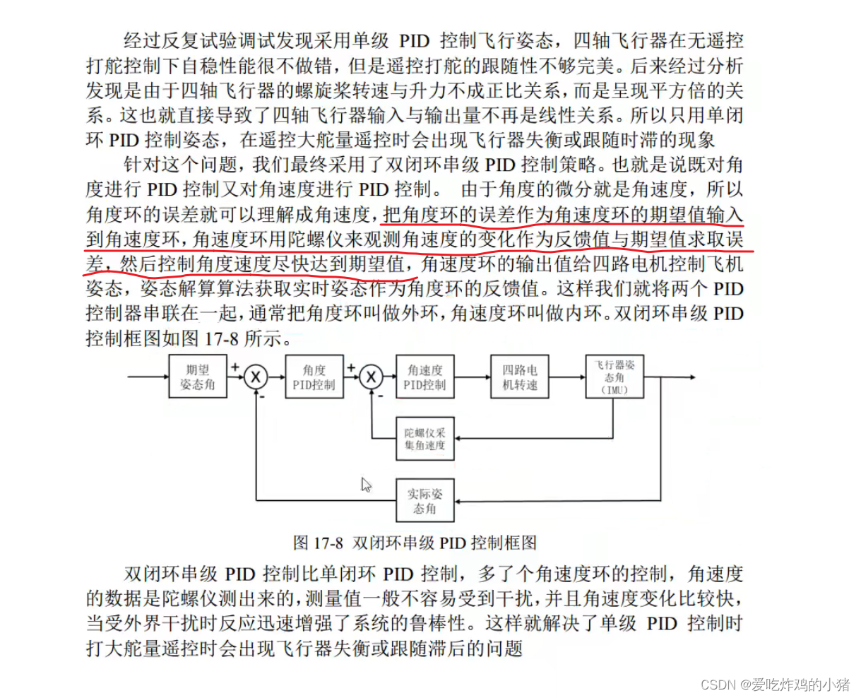最后还想分享一下无人机串级PID的实现思路,这里的串级PID就是将控制分为内环与外环: