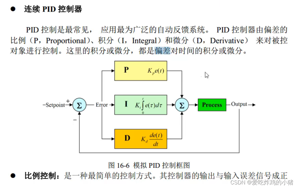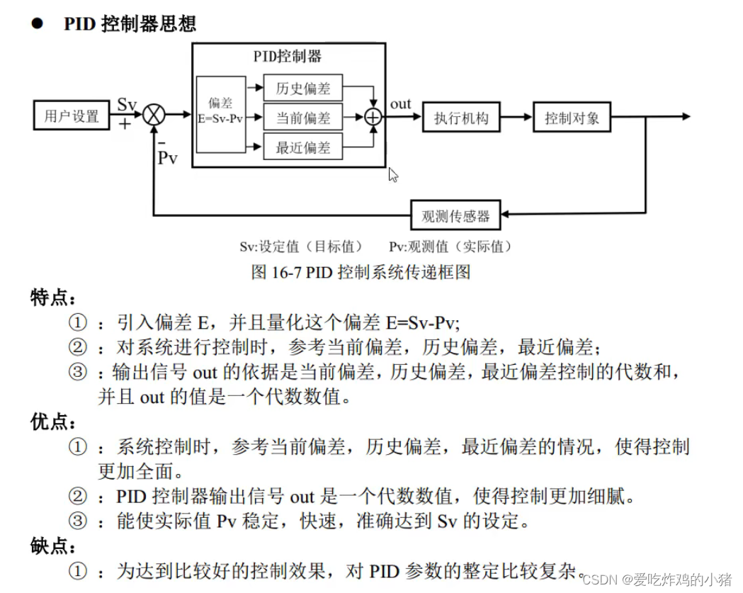 PID控制系统的基本构架实际就是我们耳熟能详的反馈控制,能根据输出值对输入值进行调整。从而使输入值达到最优的效果。