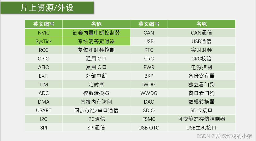 附:stm32外设接口英文缩写与应用(外设因型号而异,一些外设可能部分型号没有)