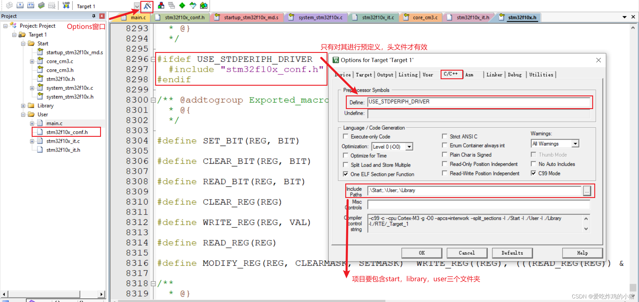 5,工程选项,C/C++,Define内定义USE_STDPERIPH_DRIVER