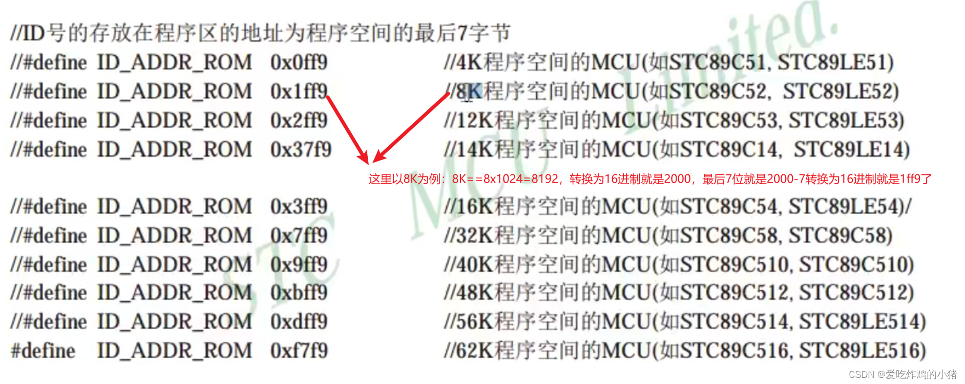 程序区的单片机ID识别: (前缀加上code表示的是定义在ROM内的地址)