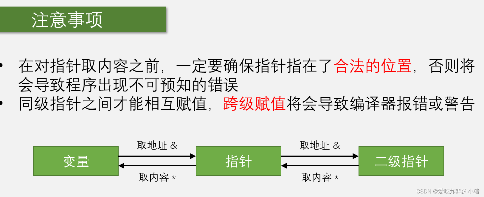 C语言要巧用&与*对数据进行转换,保证指针等级一致,如果有需要可能需要用到强制转换: