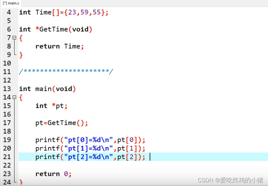 例如这里就是用的GetTime函数来使得主函数可以修改Time数组内的数据: