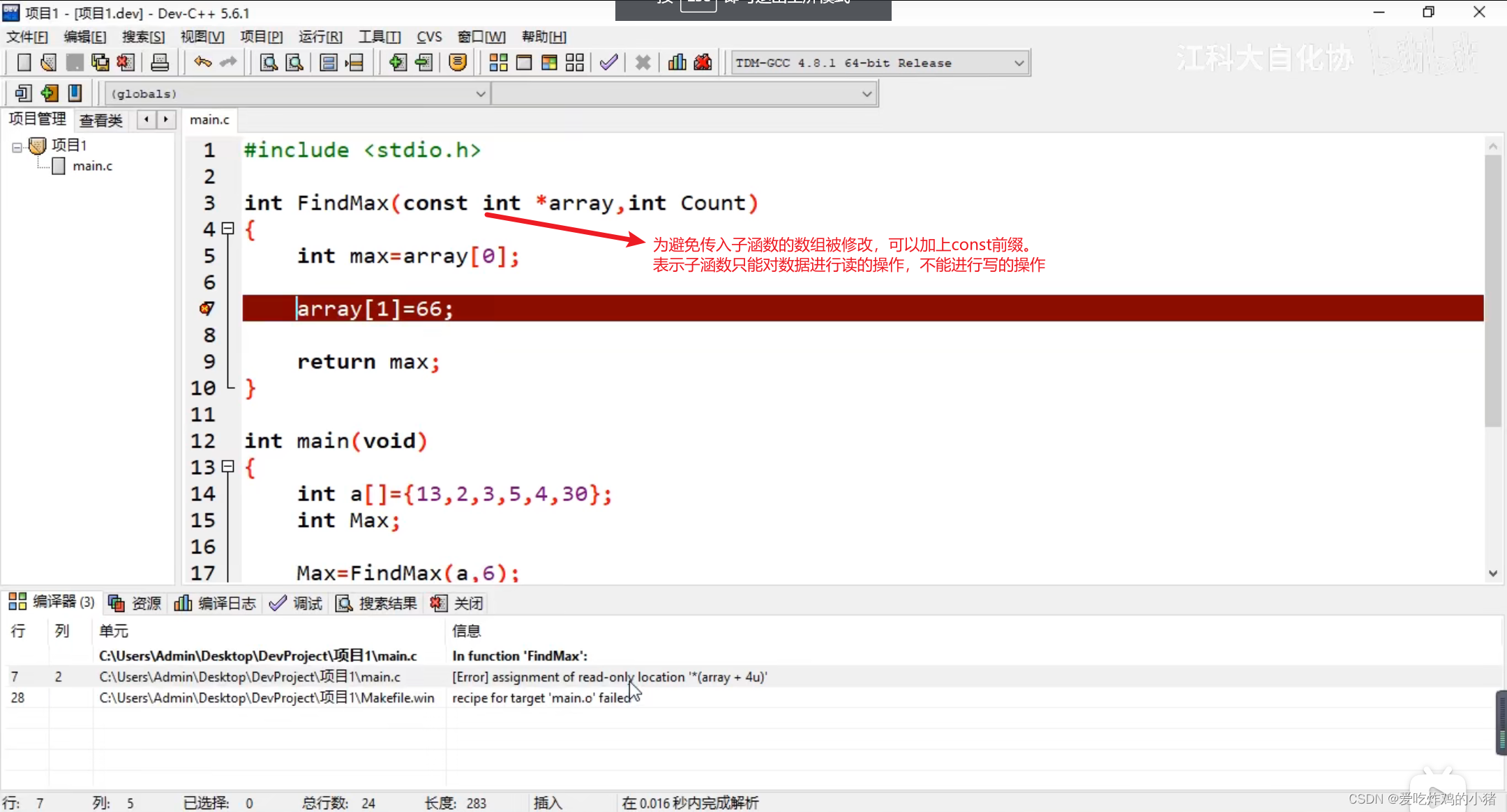 Const修饰避免子涵数擅自修改主函数传递过去的数据