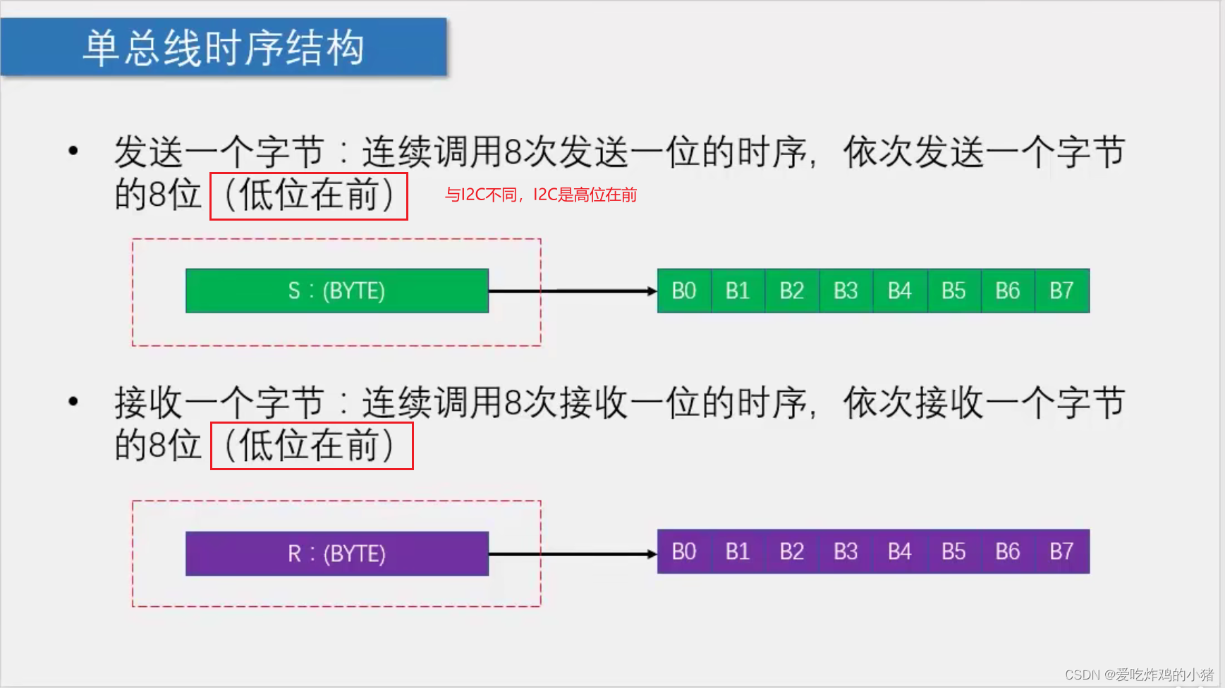 连续调用8次发送一位的时序,依次发送一个字节的8位(低位在前)