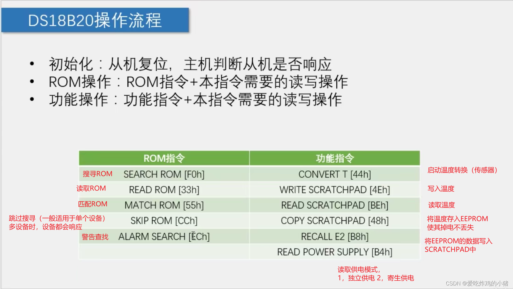 在DS18B20温度传感器进行初始化操作的时候,由于我们这里单线通信的只有DS18B20这一个设备,所以ROM就不需要进行匹配,而且要将DS18B20温度传感器收集到的模拟信号转化为温度值