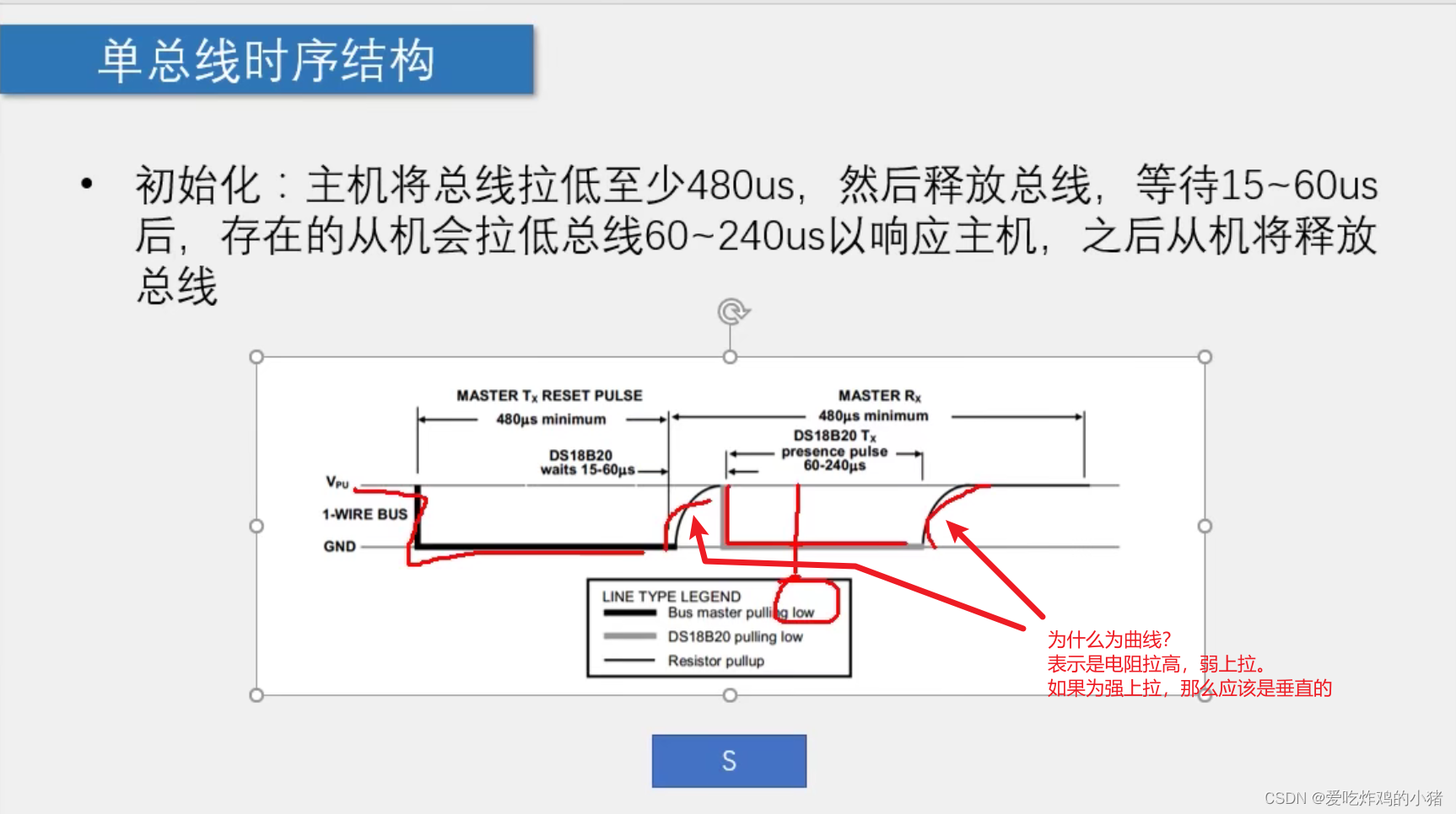 主机将总线拉低60~120us,然后释放总线,表示发送0;(这里确认上限是120us是为了避免时间过长,表示成初始化)