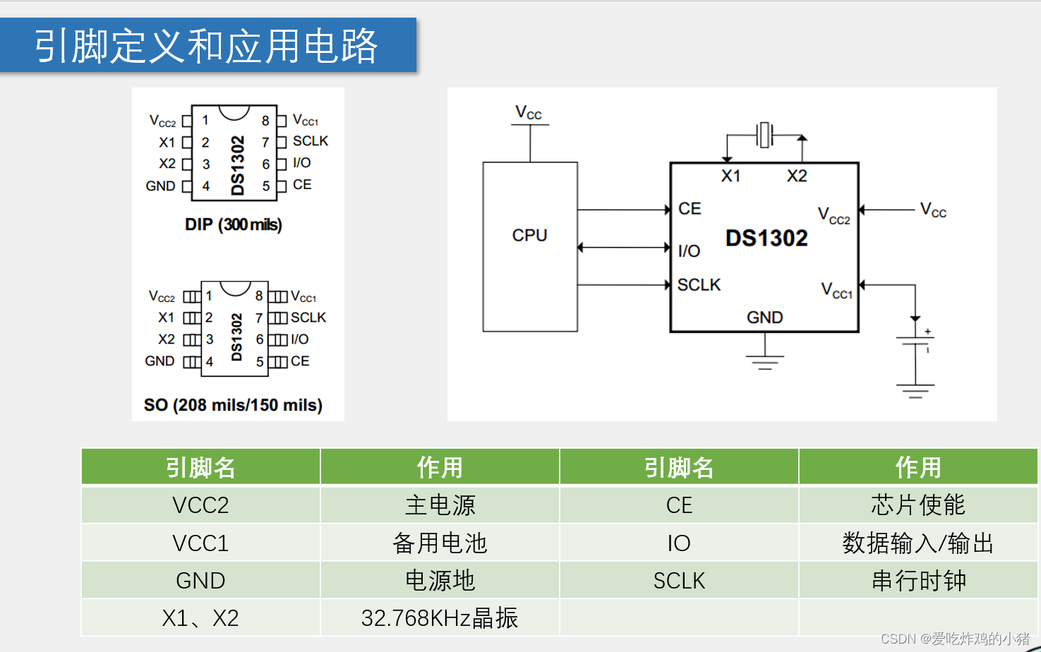 DS1302是由美国DALLAS公司推出的具有涓细电流充电能力的低功耗实时时钟芯片。它可以对年、月、日、周、时、分、秒进行计时,且具有闰年补偿等多种功能