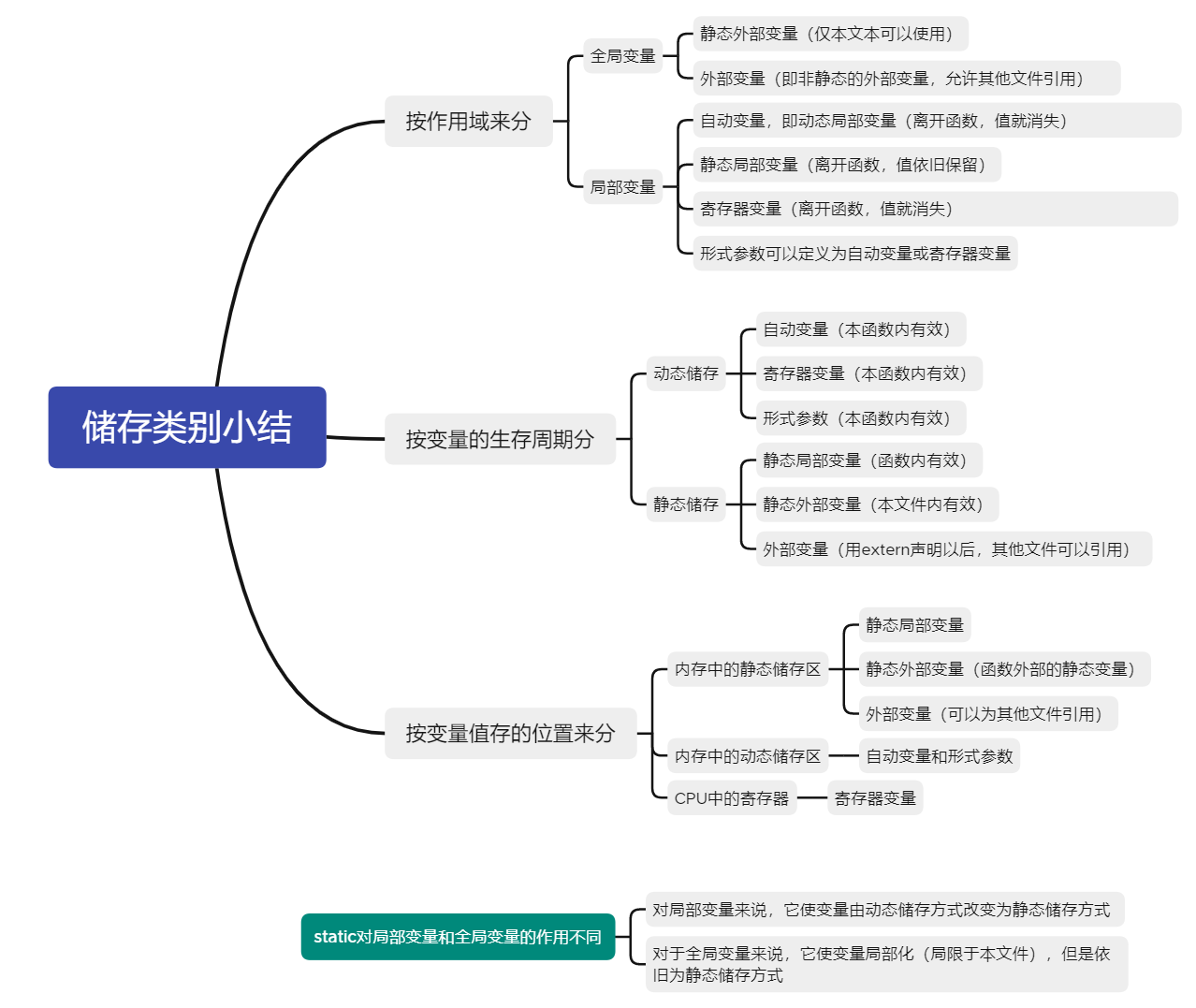 对于全局变量来说,它使变量局部化(局限于本文件),但是依旧为静态储存方式