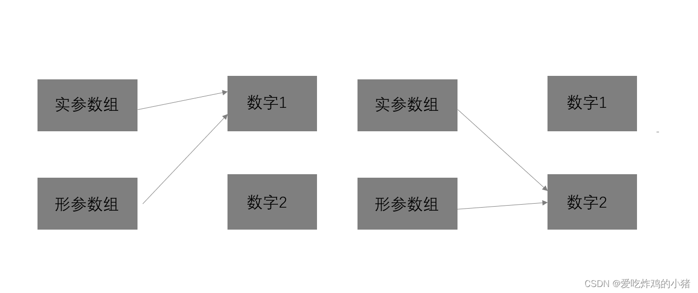 我们理解的时候可以认为实参数组与形参数组在储存空间上完全重合。什么意思呢,就是形参数组的第一个位置a[0]与形参数组b[0]的地址是一样的,共同指向一个数字。当在函数中,形参的指向改变时,实参的指向也跟着改变(虚实结合)