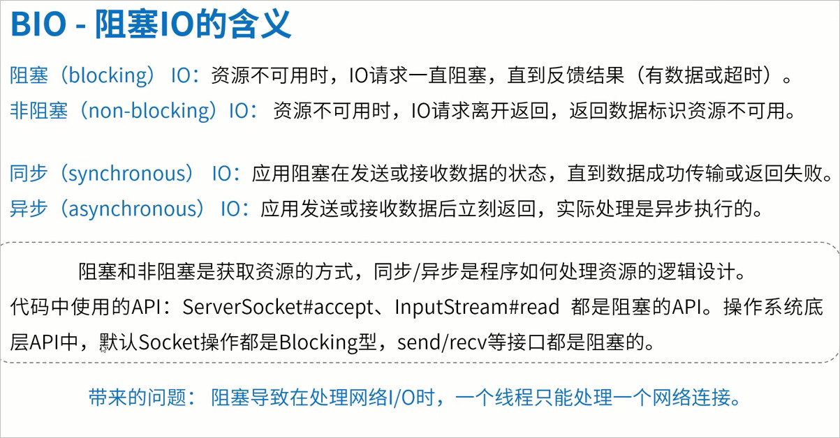 // 多线程支持 public class BIOServer1 { private static ExecutorService threadPool = Executors.newCachedThreadPool(); public static void main(String[] args) throws Exception { ServerSocket serverSocket = new ServerSocket(8080); System.out.println("tomcat 服务器启动成功"); while (!serverSocket.isClosed()) { Socket request = serverSocket.accept(); System.out.println("收到新连接 : " + request.toString()); threadPool.execute(() -> { try { // 接收数据、打印 InputStream inputStream = request.getInputStream(); BufferedReader reader = new BufferedReader(new InputStreamReader(inputStream, "utf-8")); String msg; while ((msg = reader.readLine()) != null) { // 阻塞 if (msg.length() == 0) { break; } System.out.println(msg); } System.out.println("收到数据,来自:"+ request.toString()); } catch (IOException e) { e.printStackTrace(); } finally { try { request.close(); } catch (IOException e) { e.printStackTrace(); } } }); } serverSocket.close(); } }