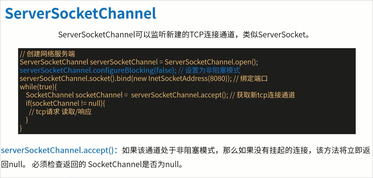 serverSocketChannel.bind(new InetSocketAddress(8080));