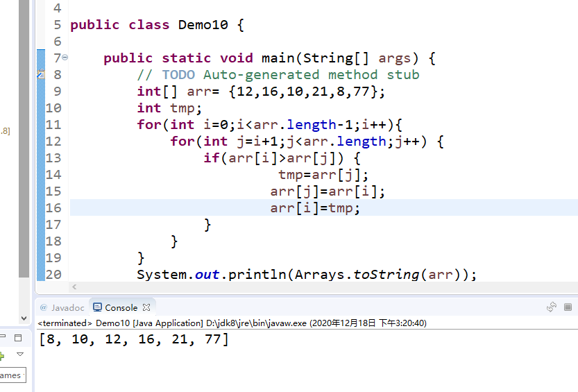 不同的是选择排序循环中的初始值需要考虑到初始下标问题,所以一个i(外循环的i)的初值为0,而j(内循环的j)的初值为1