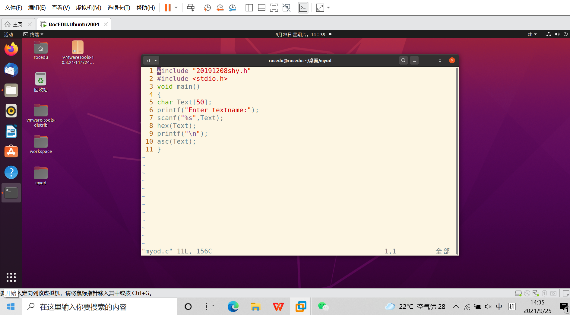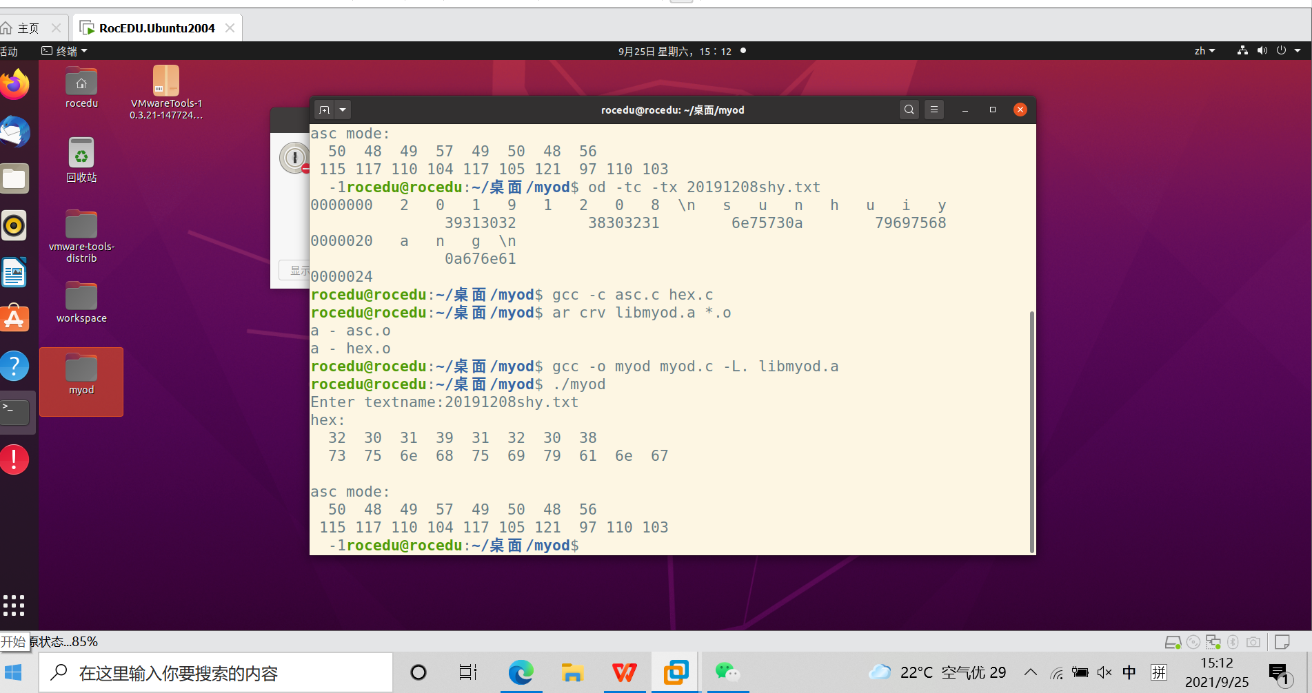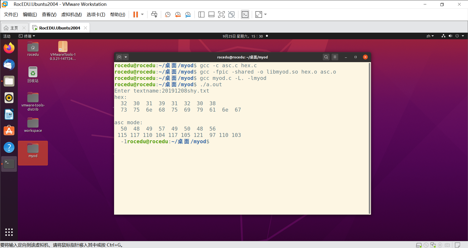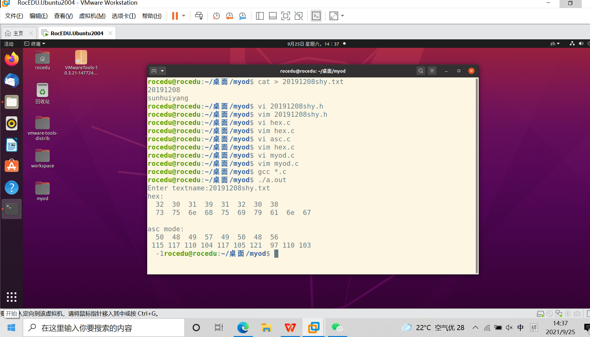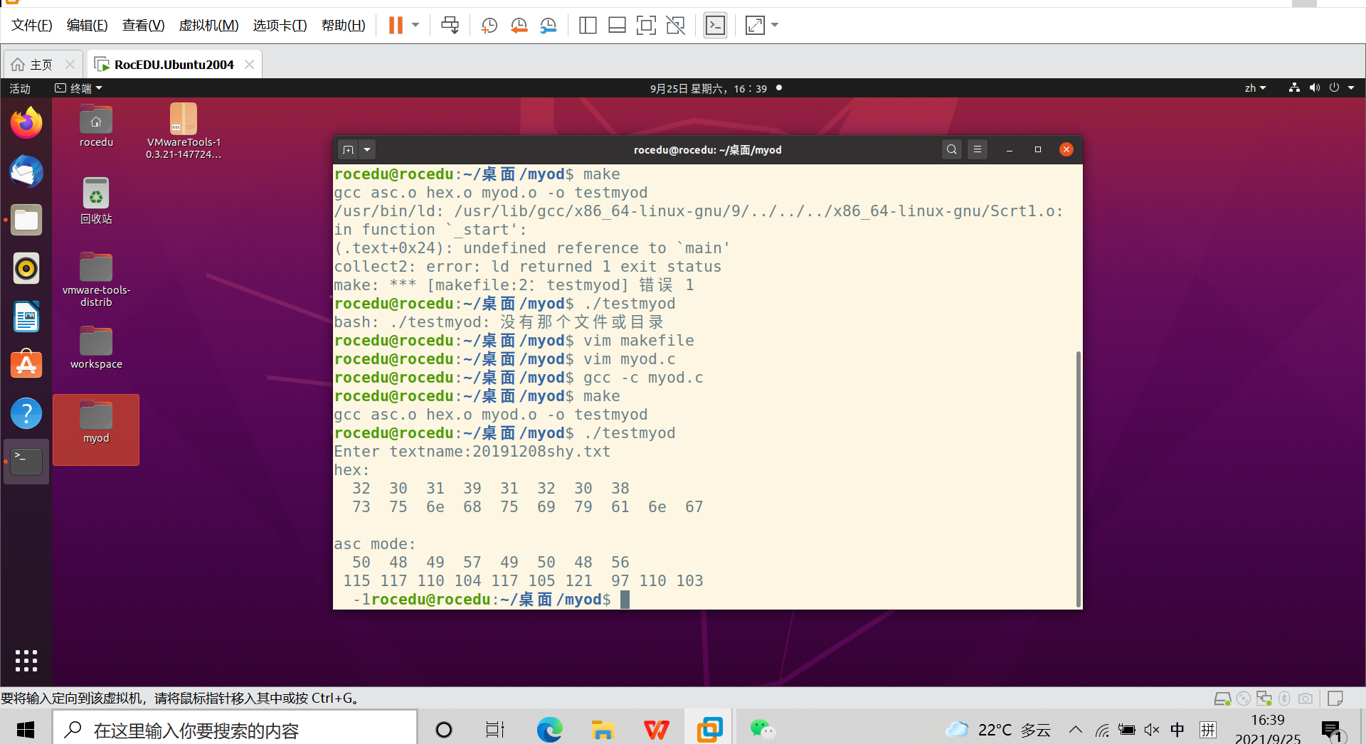 创建头文件、hex.c、asc.c、myod.c文件
