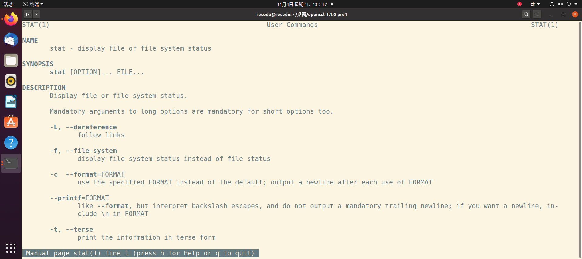 - 用man stat查看