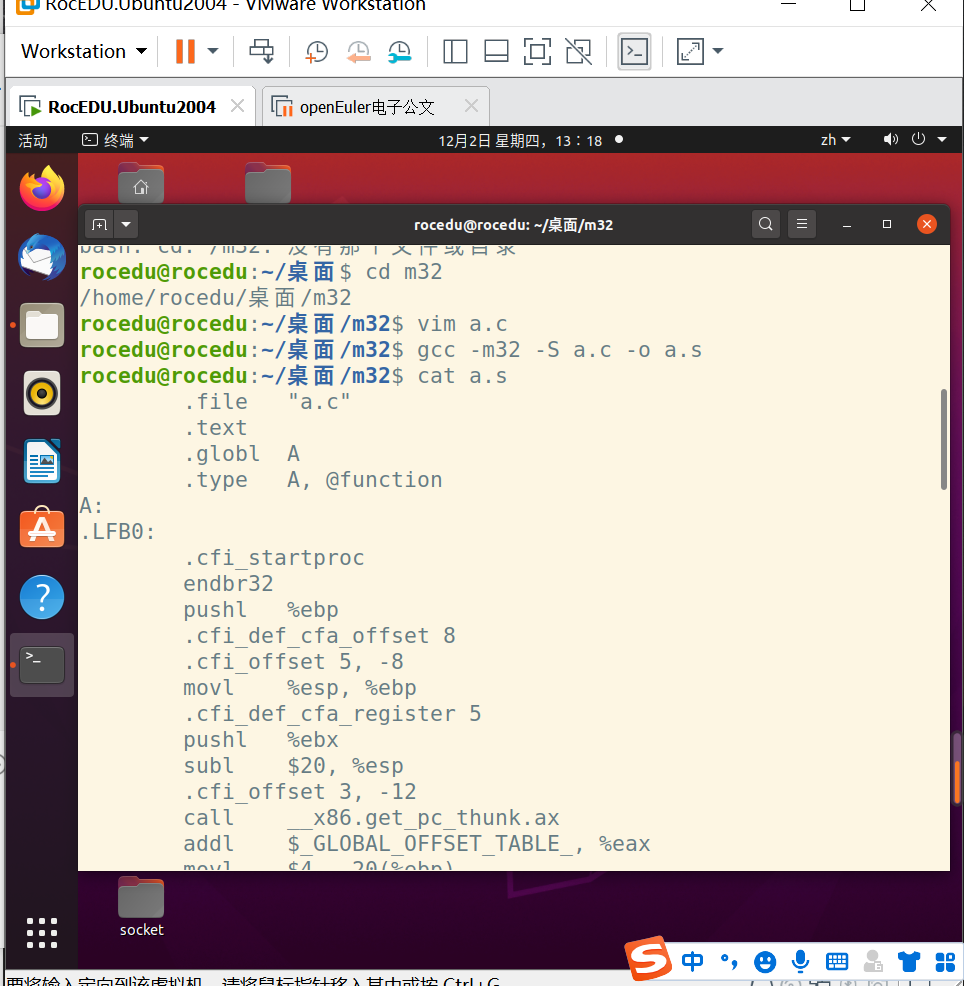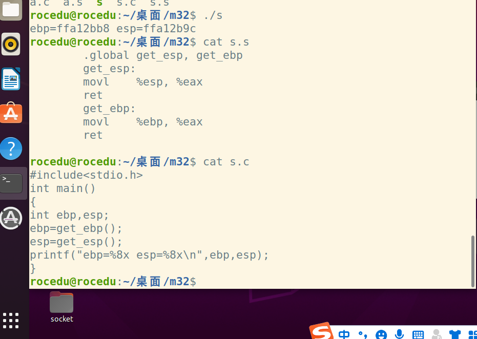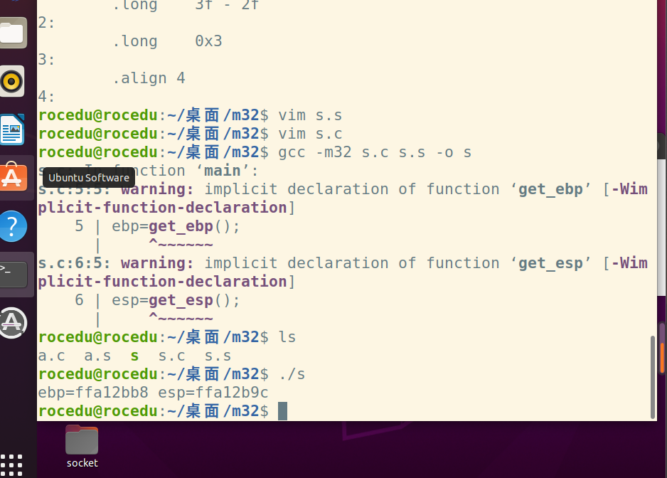 gcc -m32 s.c s.s -o