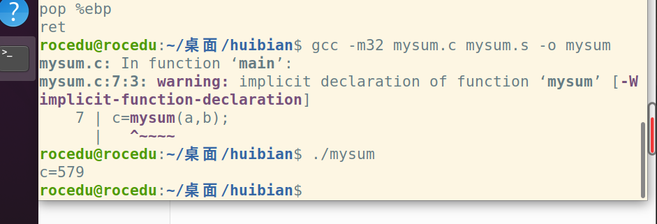 gcc -m32 mysum.c mysum.s -o mysum
