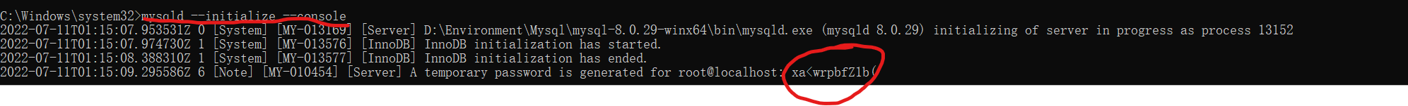 2. 执行命令初始化 Mysql,并且获得初始密码,密码要记住,后面要用