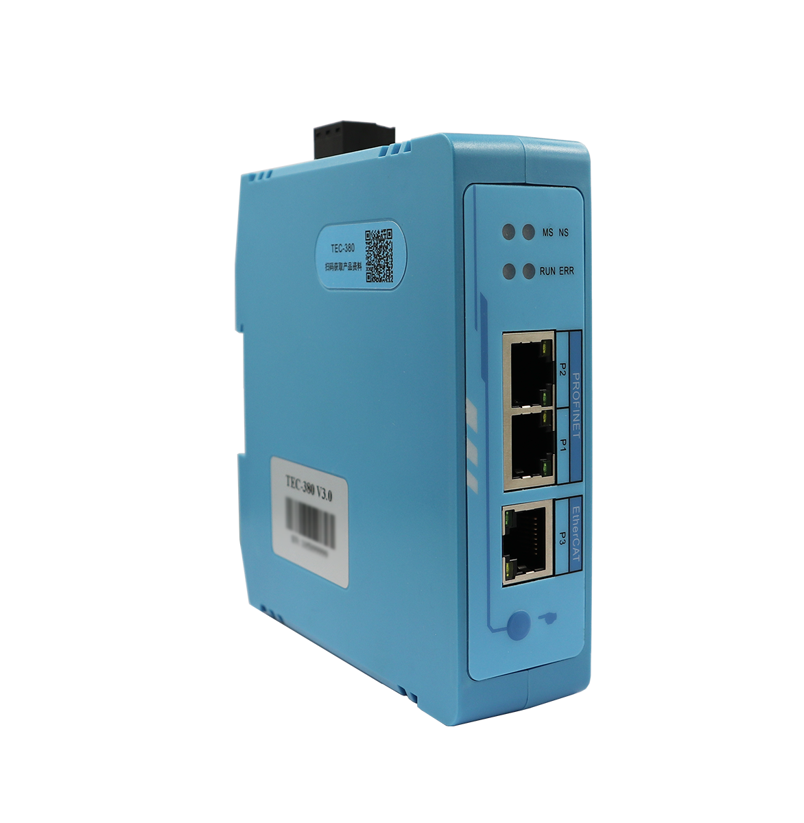 TEC-380实现PROFINET控制器和EtherCAT从站设备之间的数据通信,可将多达32个EtherCAT设备连接到PROFINET(RT和IRT)网络。采用 ECATStart 图形化配置,支持EtherCAT从站设备描述文件(ESI)解析,同时还支持EtherCAT从站热插拔功能。