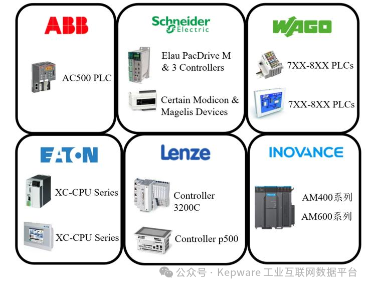 支持CODESYS的PLC品牌包括ABB、施耐德、WAGO、EATON、Lenze和汇川(INOVANCE)等。