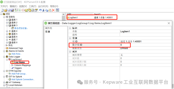 添加需要存储的log items之后,就可以在对应的items里面设置数字项ID,同类型的/同设备的参数可以设置成一样的,这样存储到数据库之后,能够更方便的在数据库中进行检索。