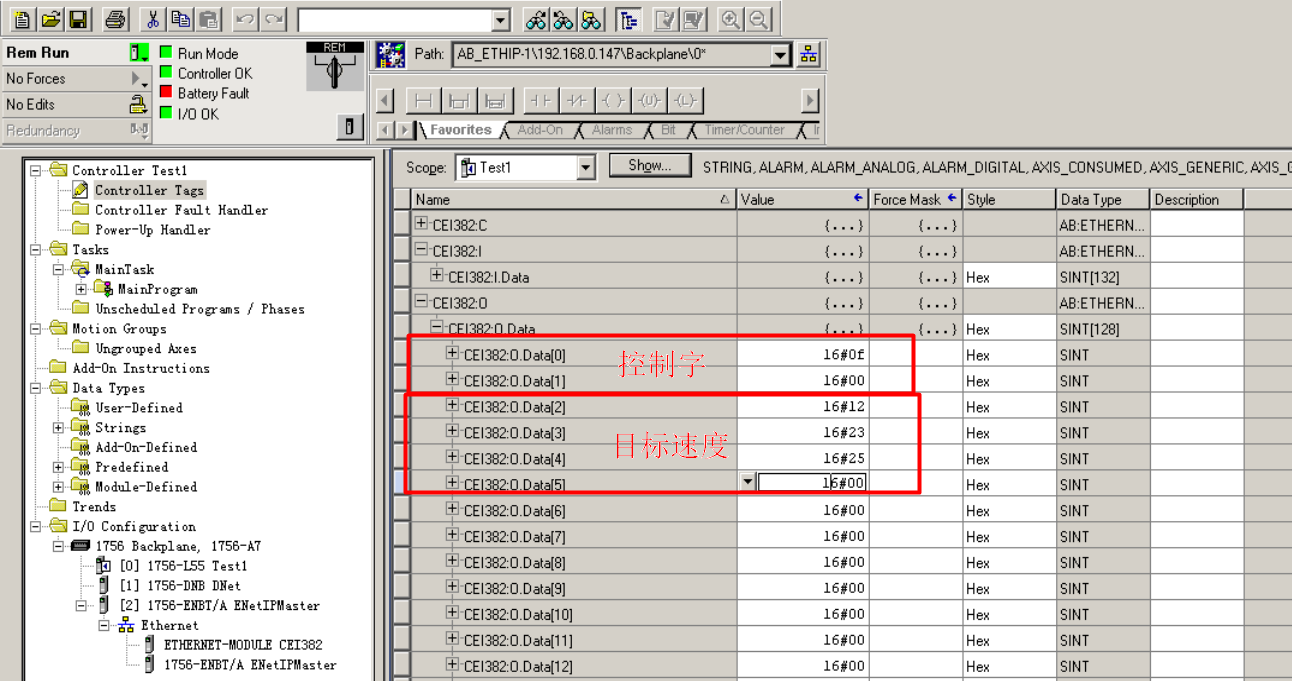 在AB PLC组态软件RSlogix5000中赋值实现电机按照指定速度转动