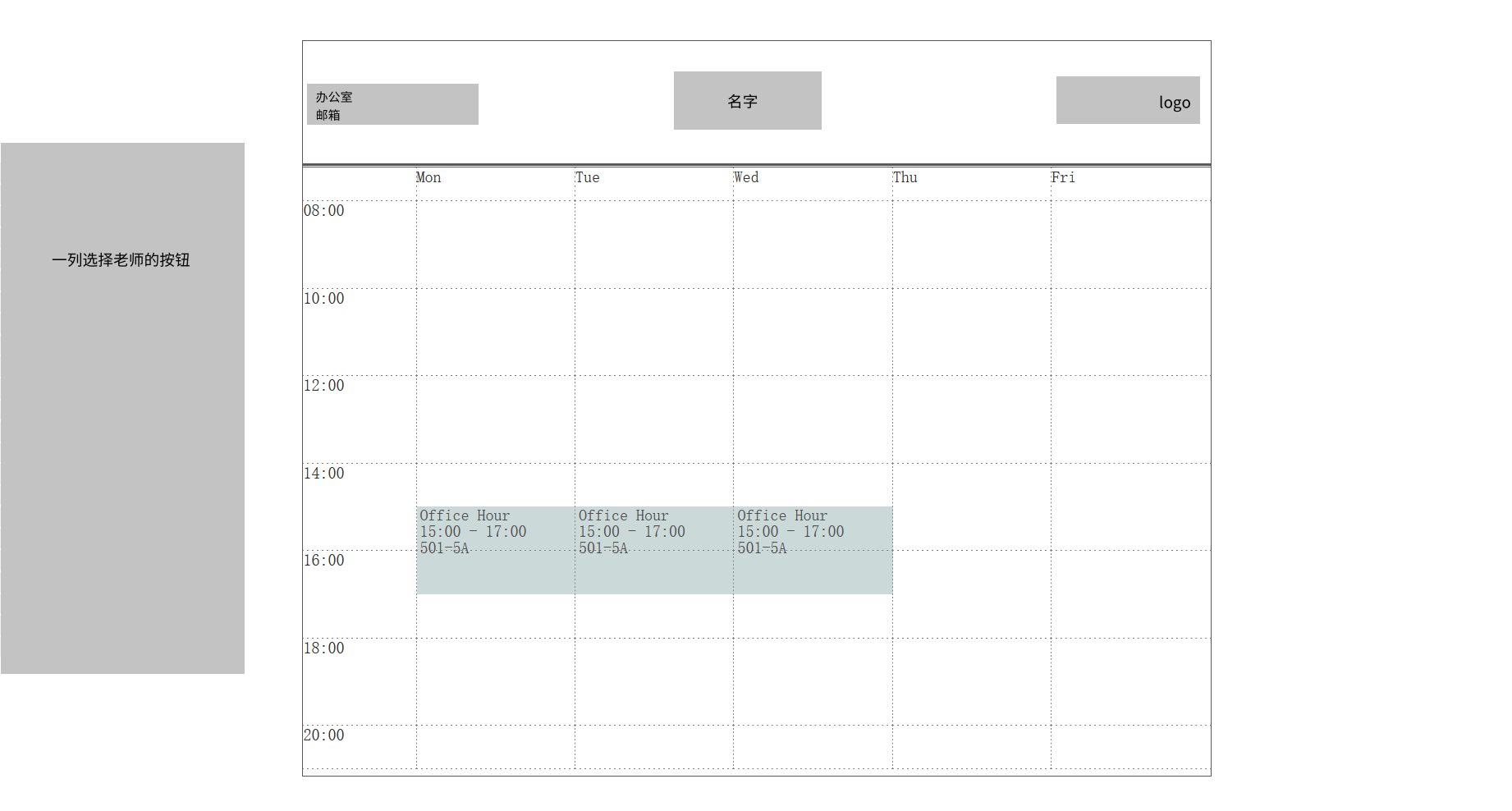 最近的一个小练习。新的学期开始了,老板让我给每位老师做个时间表展示他们的office hour和课程安排,我先用AI手动做了二十多张时间表用于印刷。出于好奇和对偷懒的探索,周末我又用CSS网格布局弄了一个网页,最后弄出来长这样。