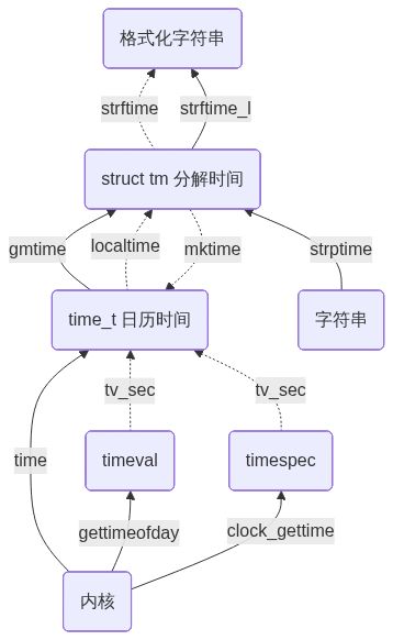 struct tm *gmtime(const time_t *calptr);//转换为协调统一时间