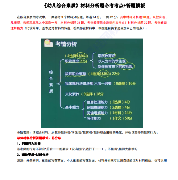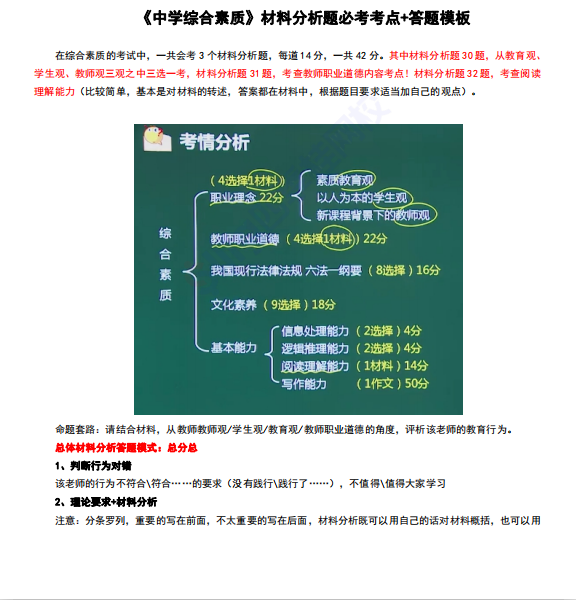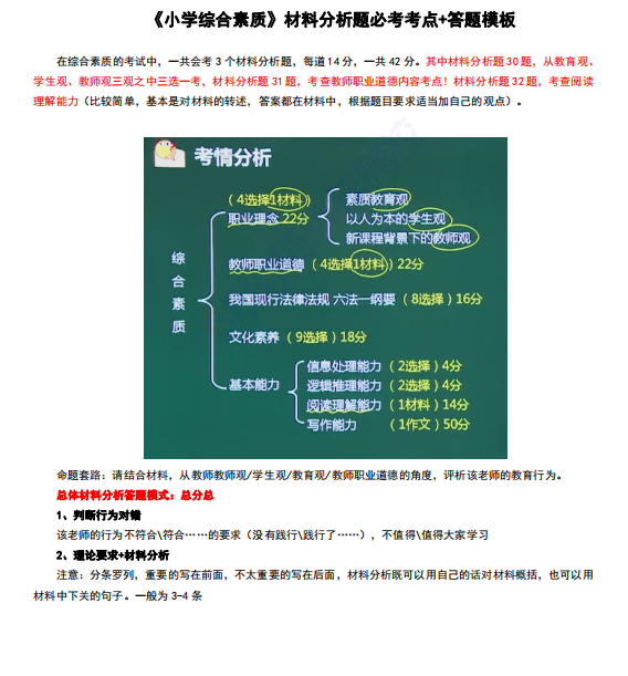 作为《综合素质》的扣分大项,除了勤加练习外,对于答题技巧和答题模板的熟悉度也很重要,对于考生来说,拥有一份答题模板,可以让你的材料题多考几十分!