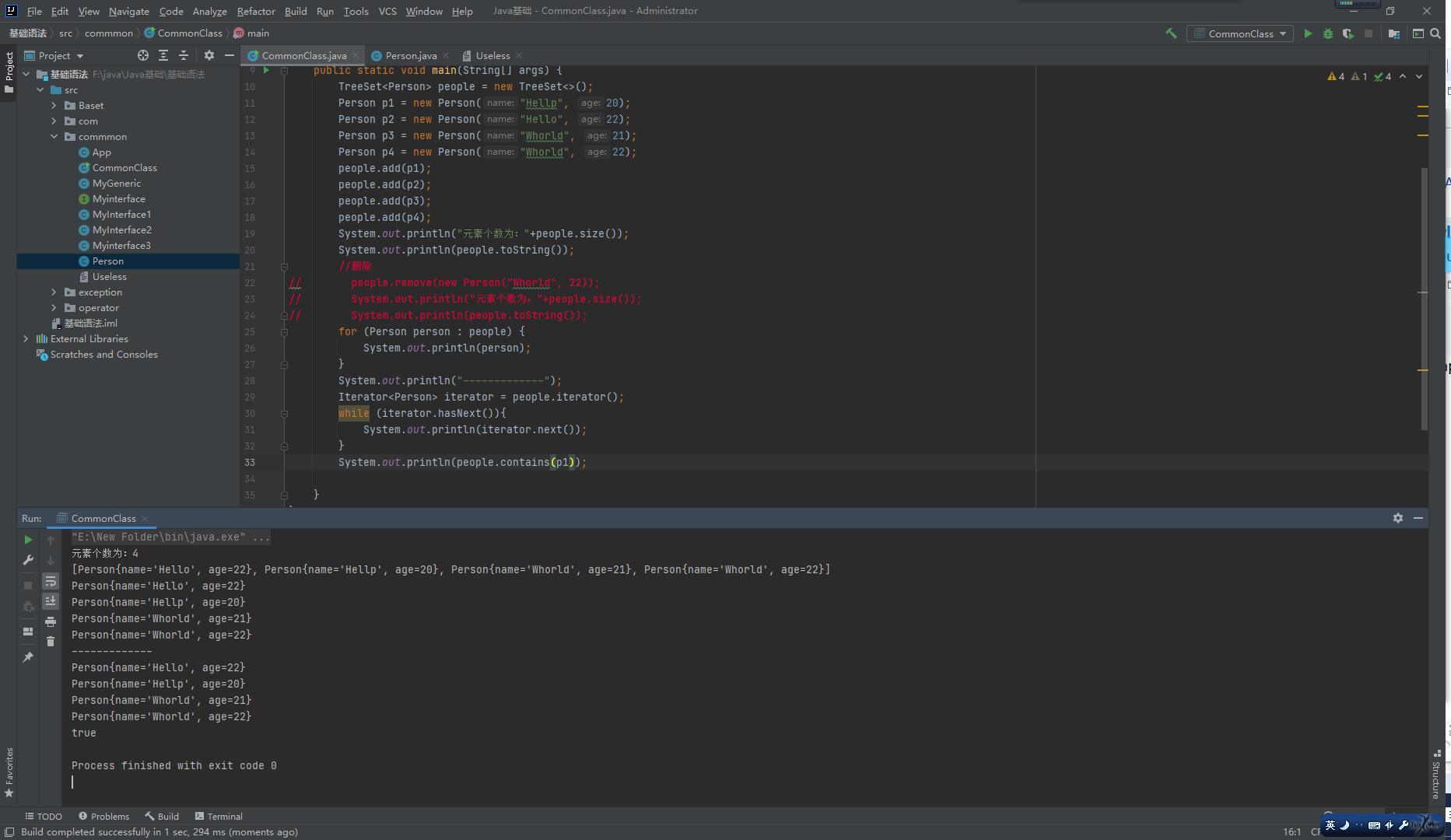 boolean contains(0bject o)//检查此集合中是否包含o对象