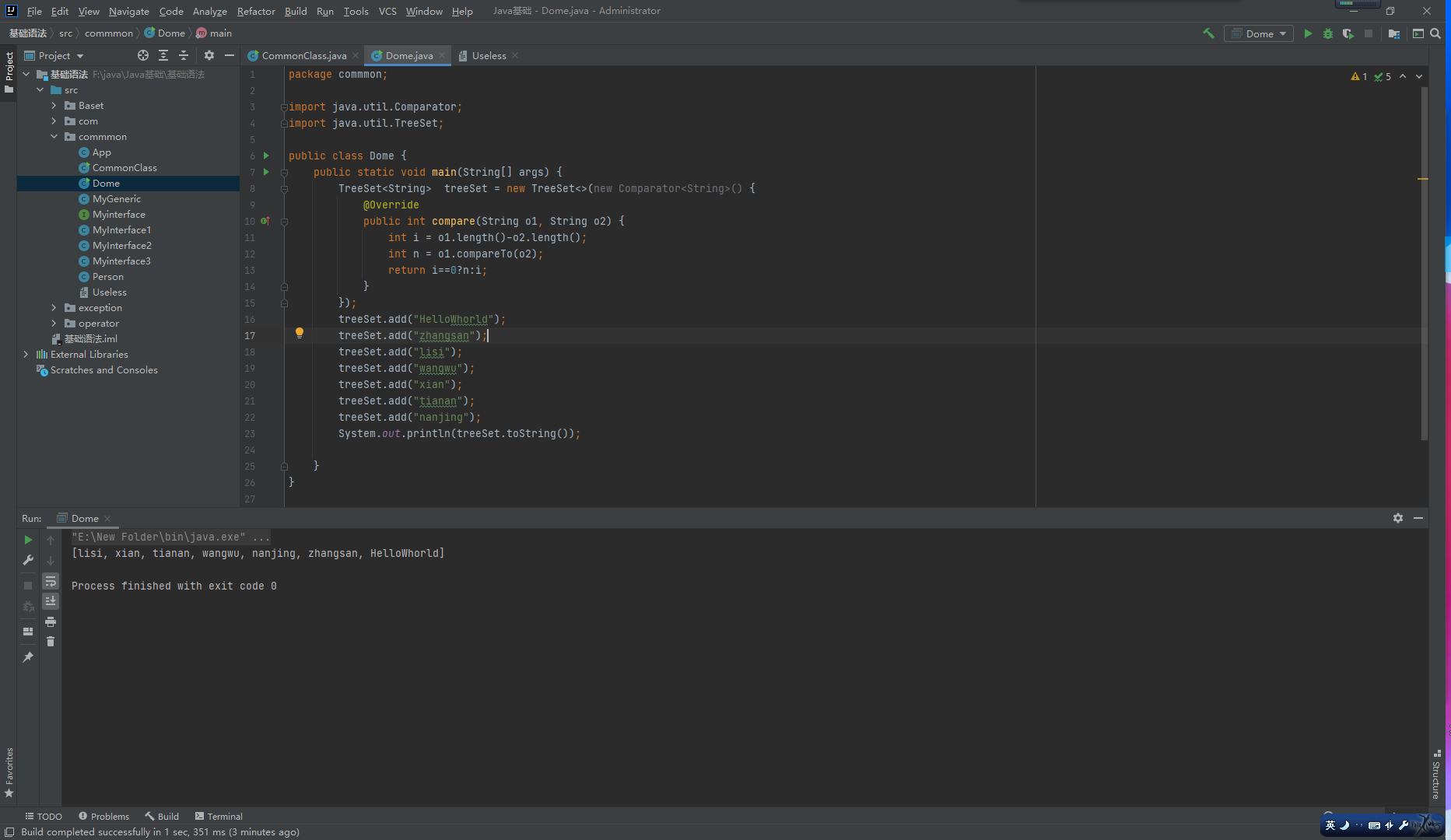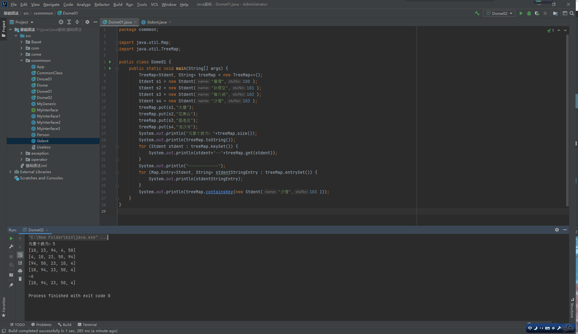 元素对象的类型必须实现Comparable接口,指定排序规则。