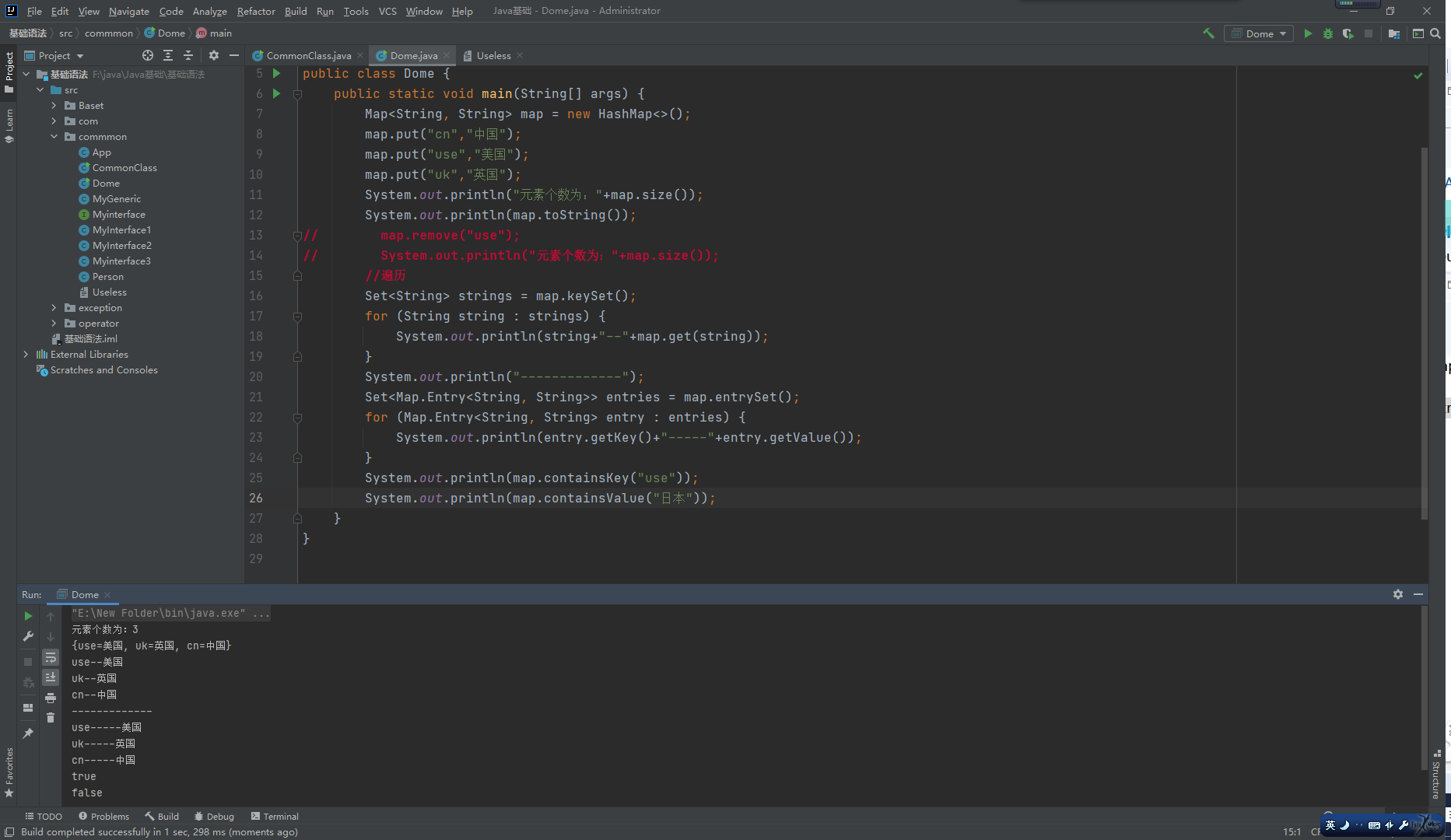 v put(K key,v value)//将对象存入到集合中,关联键值。key重复则覆盖原值。