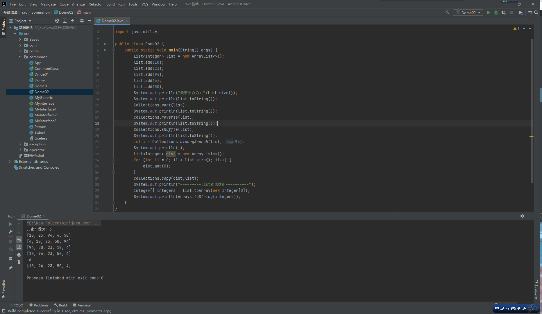 System.out.println("----------------比较此集合是否与指定对象相等-------------------------");