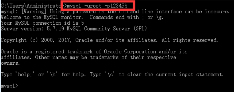 注意 : -p后面不能加空格,否则会被当做密码的内容,导致登录失败 !