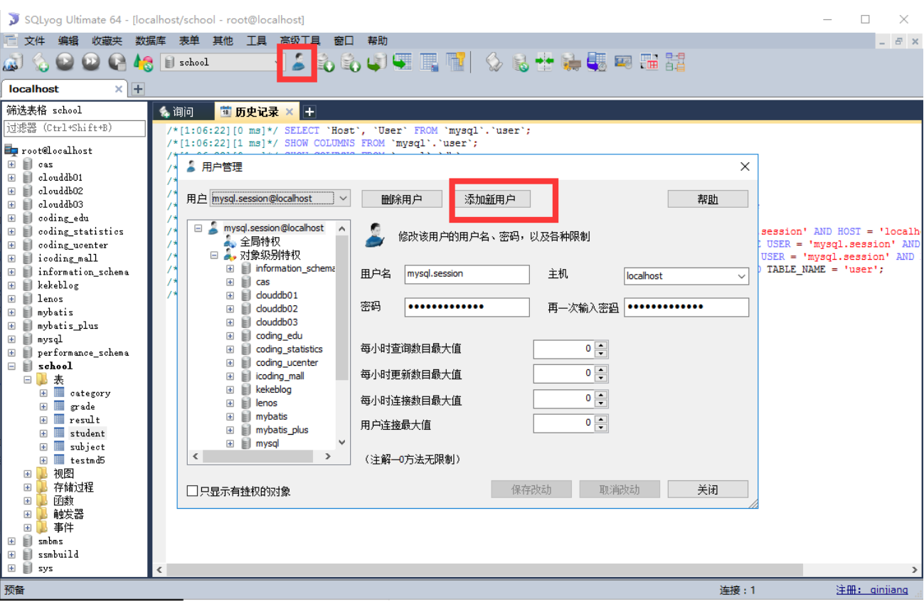 在历史记录中可以看到相对应的数据库操作的语句 .