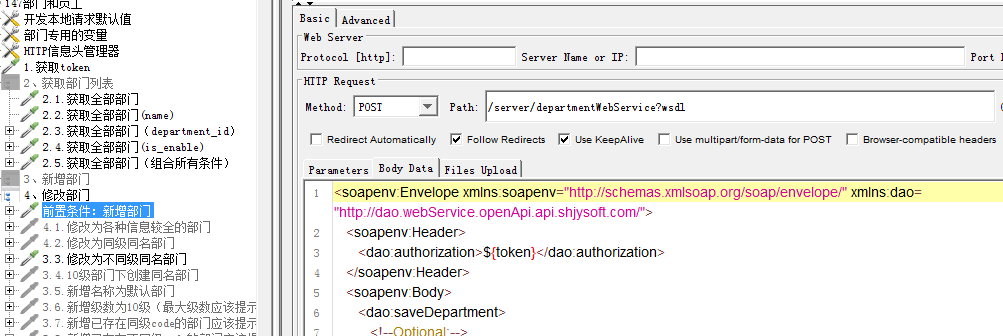 3)传参或者说body data就是上一步从soup UI复制过来的xml内容
