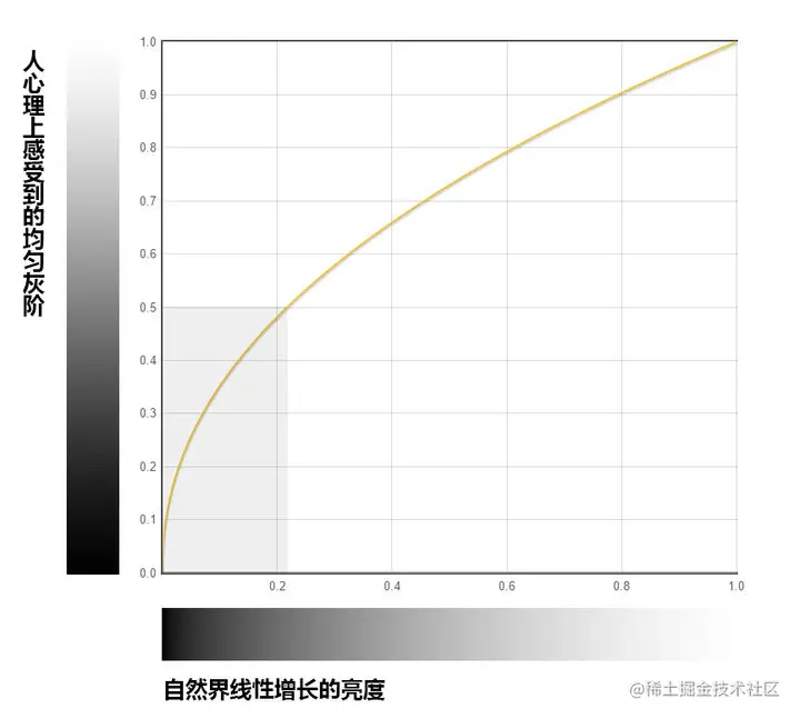 人眼对暗的亮度变化感受比较明显,在图像大小受限的条件下,可以花更多的空间存储颜色较暗的部分,能起到提高图片质量的效果。