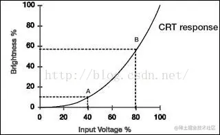电压与亮度的关系为,L是输出亮度,V是电压,gamma一般约为2.2。我们称它CRT gamma。