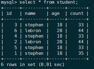 3,stephen,18,33 6,lebron,28,44 4,stephen,18,33 5,stephen,18,33 1,stephen,18,33 2,lebron,28,44