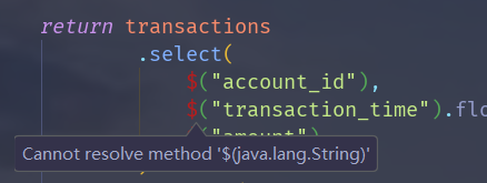 解决方案: import static org.apache.flink.table.api.Expressions.$;