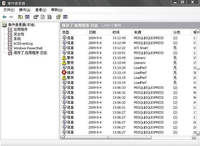 后来直接用VS2008 平台下的“工具”》“连接到数据库”,弹出了错误“事件日志文件已满”。